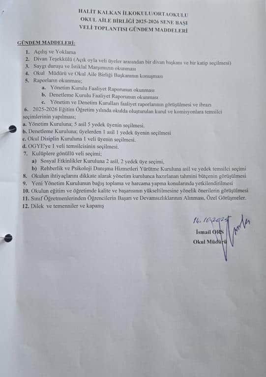 HALİT KALKAN ORTAOKULU OKUL AİLE BİRLİĞİ SENE BAŞI VELİ TOPLANTISI